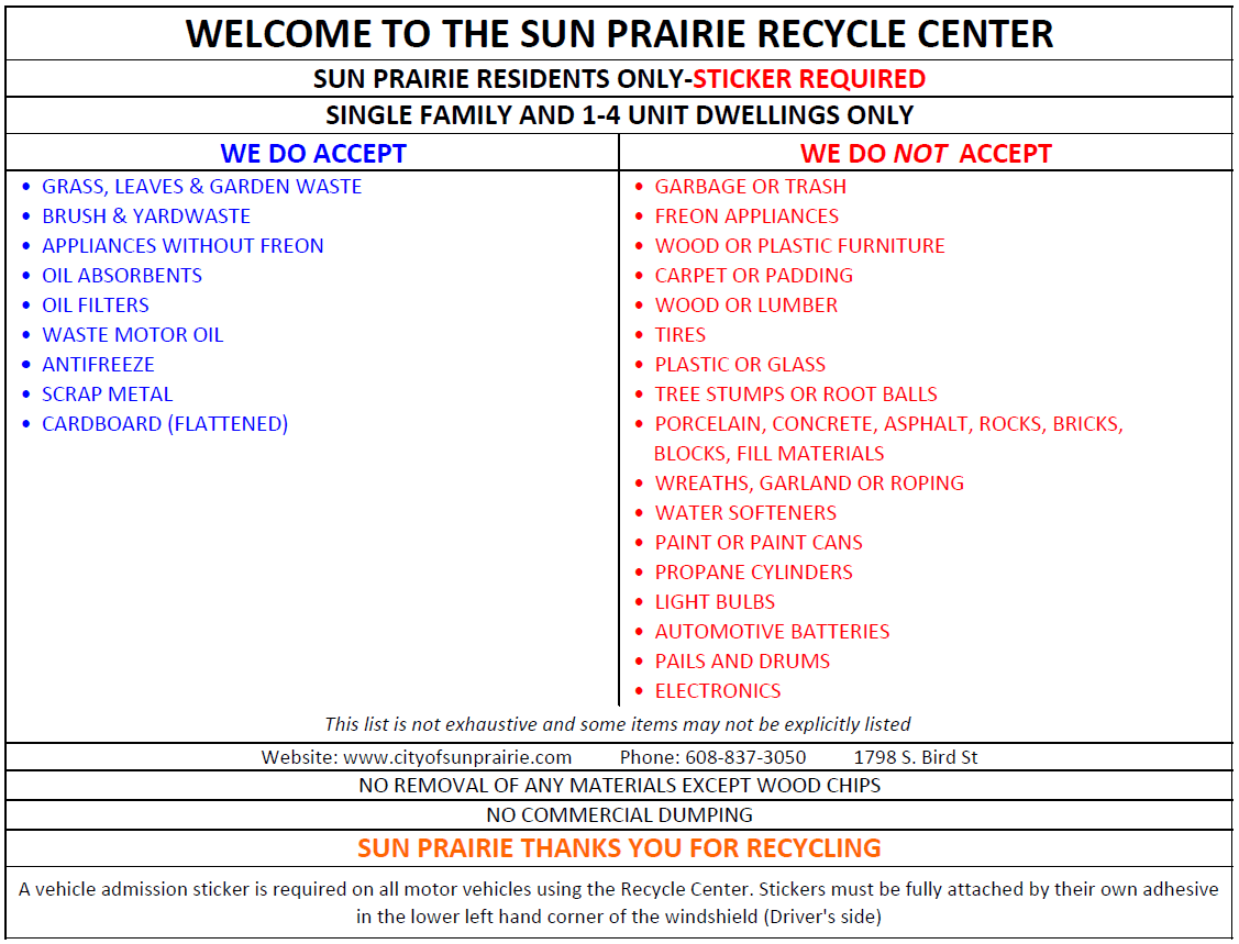 Recycle Center Information Hours Sun Prairie Wi Official Website